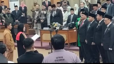 Gresik| radarjatim.co ~ Dewan Perwakilan Rakyat Daerah (DPRD) kabupaten Gresik akhirnya resmi memiliki pimpinan definitif. Empat kader partai pemenang Pemilihan Legislatif (Pileg) 2024 dilantik Ketua PN Gresik I Gusti Ayu Susilawati, SH, MH di ruang rapat paripurna DPRD, Sekira Jam 11 00. WIB. Senin (7/10/2024).