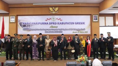GRESIK | radarjatim co–Dewan Perwakilan Rakyat Daerah (DPRD) Kabupaten Gresik menyelenggarakan Rapat Paripurna Peresmian Pengangkatan Pengucapan Sumpah/Janji Pimpinan DPRD Kabupaten Gresik Masa Jabatan 2024-2029. Senin (7/10/2024)
