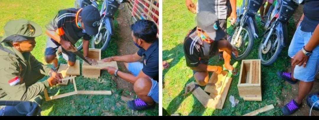 Foto : Saat Pembuatan Kotak Kawargayu untuk Sarang Lebah Liar atau lebah hutan serta koloni baru yang baru dipindahkan oleh warga setempat