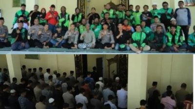GRESIK || RADAR JATIM.CO – Suasana haru menyelimuti Masjid Al-Aziz Polres Gresik pada Jumat (29/8/2025) siang. Ratusan anggota komunitas ojek online (ojol), Lembaga Swadaya Masyarakat (LSM), dan jajaran kepolisian berkumpul dalam satu majelis doa, melaksanakan Sholat Ghaib, doa bersama, serta makan siang untuk mendoakan almarhum Affan Kurniawan, seorang driver ojol yang meninggal dunia dalam insiden di Jakarta.