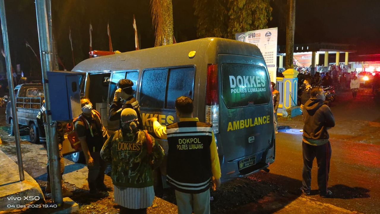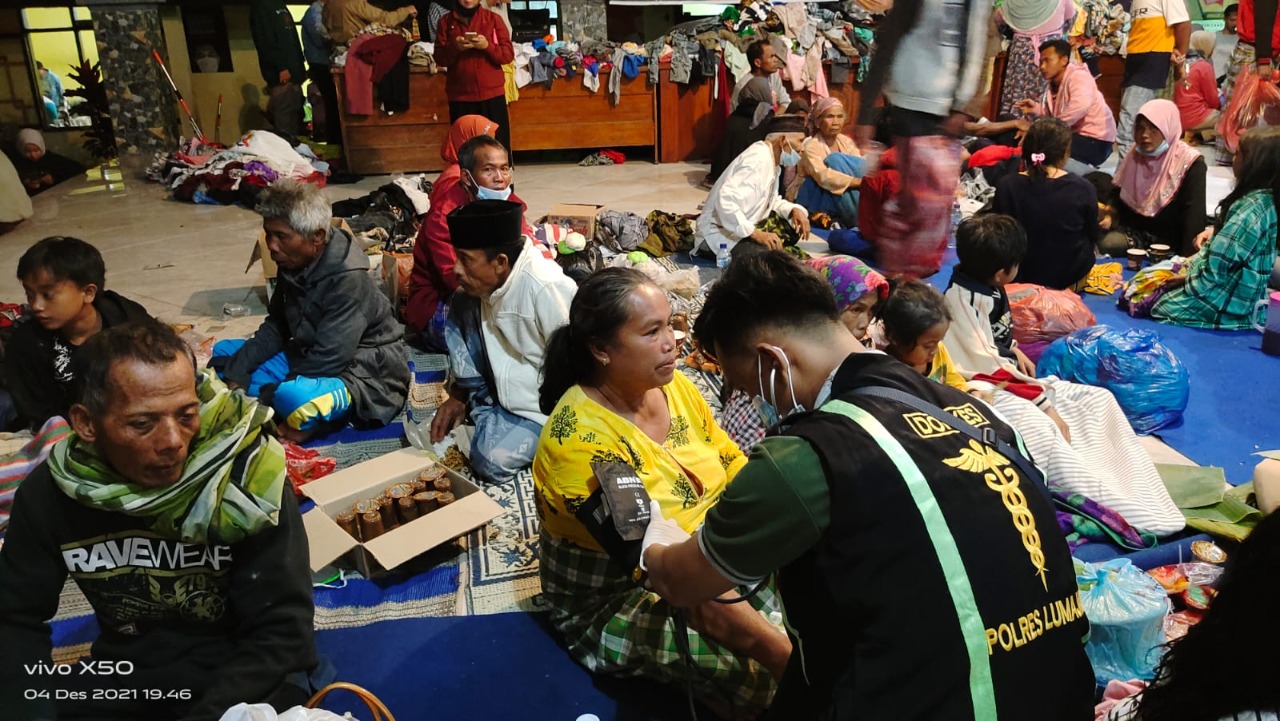 “Di Pengungsian Gunung Sawur dan balai Desa Penanggal Candipuro, Tim Dokkes Polres Lumajang bersama RS. Bhayangkara mulai bekerja. Satu persatu kondisi kesehatan pengungsi mulai diperiksa, kami lakukan pertolongan pertama dengan merawat luka, memberikan obat dan vitamin,” pungkas AKBP Eka Yekti, Sabtu(04/12/2021) malam.