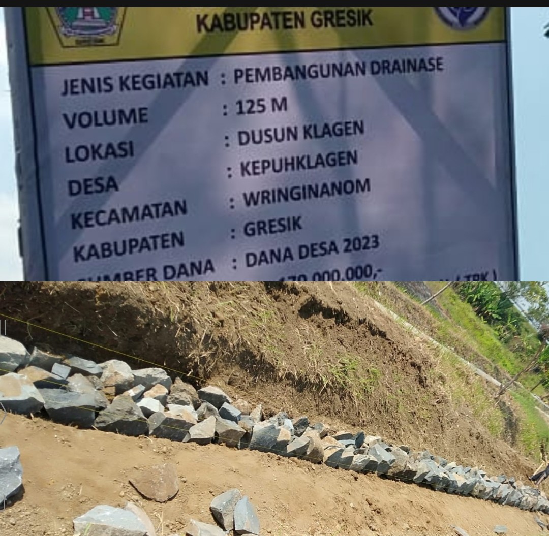 Proyek Pembangunan Drainase Desa Kepuhklagen Wringinanom Diduga Dikerjakan Asal-Asalan