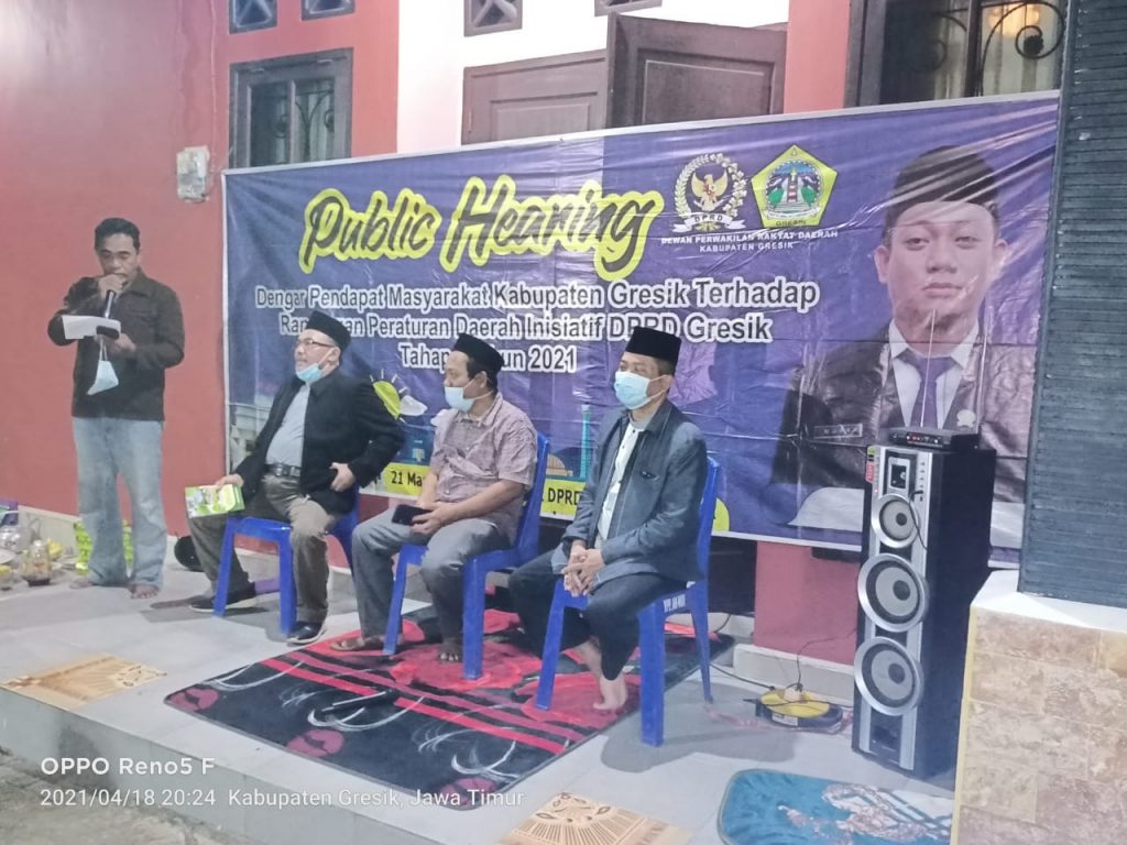 Gresik , Radarjatim.co ~ Dengar Pendapat Masyarakat Kabupaten Gresik Terhadap Rancangan Peraturan Daerah Inisiatif DPRD Gresik Tahap I Tahun 2021 yang dilakukan dirumah Ridwan ketua Himpunan Nelayan Indonesia Wilayah Bawean ( HNSI ), dihadiri oleh Camat Sangkapura Hamim, Komisi II partai Nasdem Musa, profesor Wahidin dan para nelayan Bawean, Minggu ( 19/4/2021 )