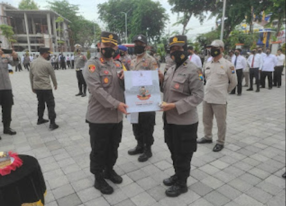 GRESIK |RADARJATIM.CO – Anggota polisi di Polres Gresik menerima penghargaan dari Kapolres Gresik AKBP Mochamad Nur Azis,SH,SIK,MSi.,di halaman Mapolres Gresik. Mereka berhasil mengungkap kasus kosmetik ilegal hingga membantu Kamtibmas dan ulang tahun di bulan November