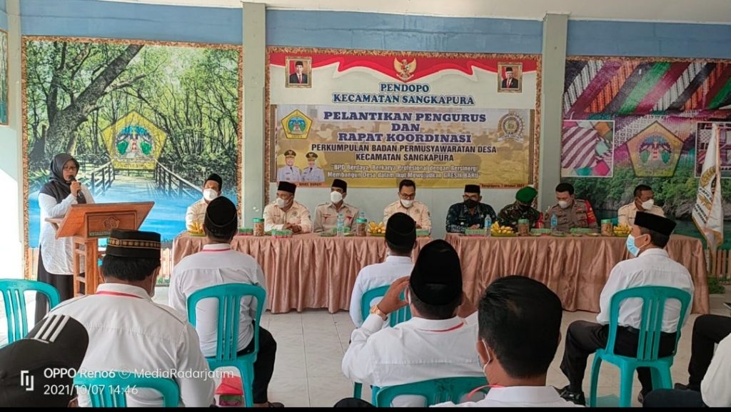 .Gresik { radarjatim.co ~ Rapat koordinasi dan Pelantikan perkumpulan BPD diselenggarakan di Pendopo Kecamatan Sangkapura pada hari Kamis 7 Oktober 2021, yang dihadiri oleh Ketua BPD Gresik, Suyanto beserta rombongan, Forkopincam Sangkapura, Ketua AKD Sangkapura dan Ketua BPD se kecamatan Sangkapura.
