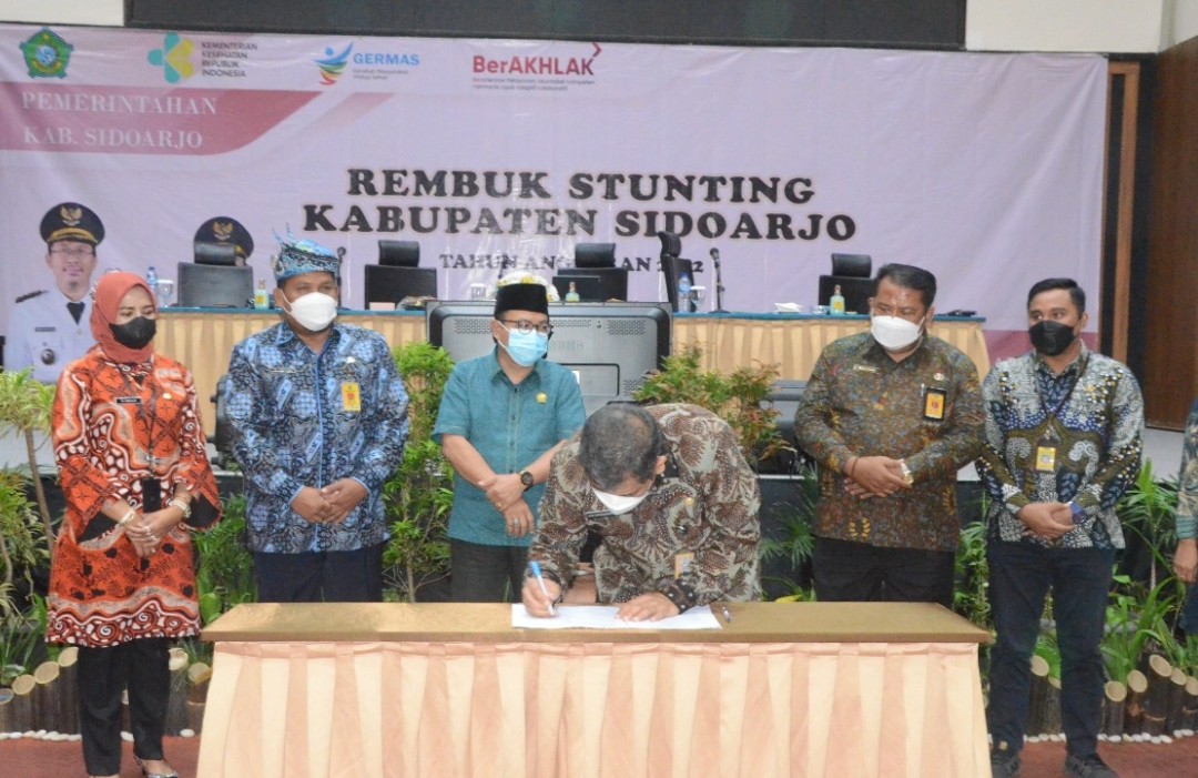 Sementara itu, Kepala Dinas Kesehatan drg. Syaf Satriawarman, berdasarkan laporan dari Dinas Kesehatan Provinsi Jawa Timur posisi Sidoarjo untuk stunting 7 terbaik se-Jawa Timur, di angka 14,8 persen dari nilai rayon. Provinsi Jawa Timur sendiri di angka 23,3 persen, Sidoarjo jauh lebih baik.