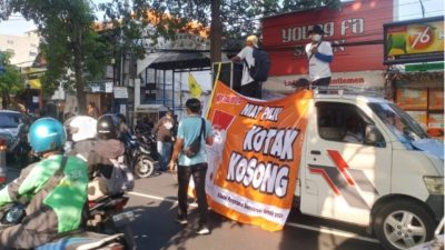 Aksi turun jalan ratusan relawan Demokrasi di mulai dari Bundaran GKB, mereka akan ngeluruk kantor Bawaslu dan KPU Kabupaten Gresik yang dianggap tidak netral dan kongkalikong. Sepanjang jalan mereka terus berorasi “Menangkan Kotak Kosong”, relawan juga mengingatkan perlunya netralitas dalam Pilbup (Pilihan Bupati) Gresik.