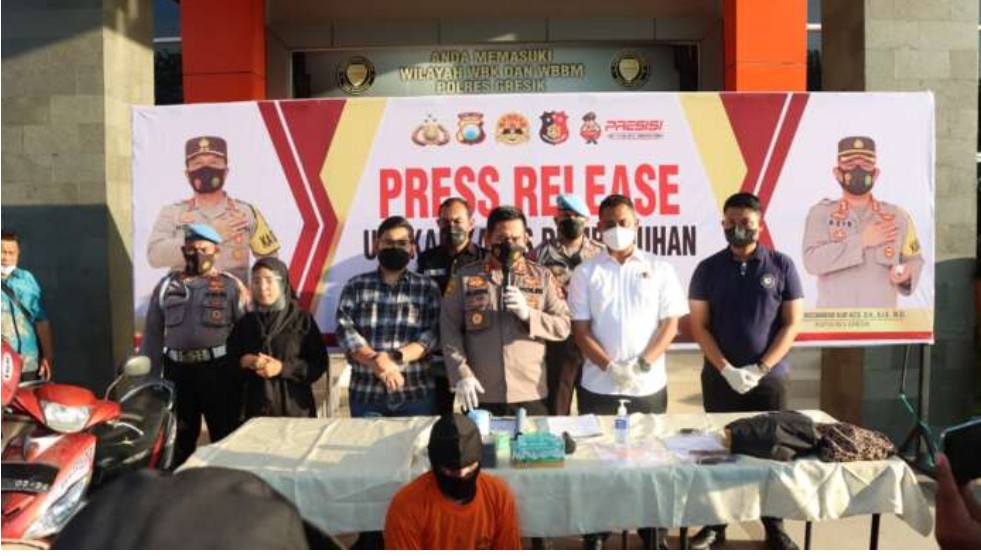 Pada hari Minggu (11-09-2022) Satreskrim Polres Gresik mendapat informasi pelaku pembunuhan HS adalah suami siri korban.
