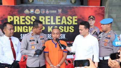 Polres Gresik usai menerima laporan bahwa ada dugaan tindak pidana Pencabulan anak dibawah umur yang dilakukan oleh seorang laki – laki. Selanjutnya setelah dilakukan rangkaian Penyelidikan diketahui bahwa pelaku merupakan seorang laki – laki yang bernama MKU dan merupakan Ayah Tiri Korban.