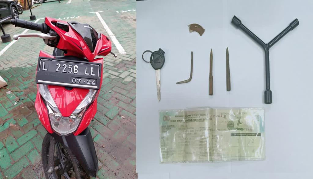 7. 1 (satu) unit Honda beat tahun 2019 warna merah hitam Nopol L 6432 LI No rangka MH1JM112KK168383 Nosin JM11E2150403 ( diamankan di Polsek genteng ),” jelas Mirzal, Kasatreskrim Polrestabes Surabaya.