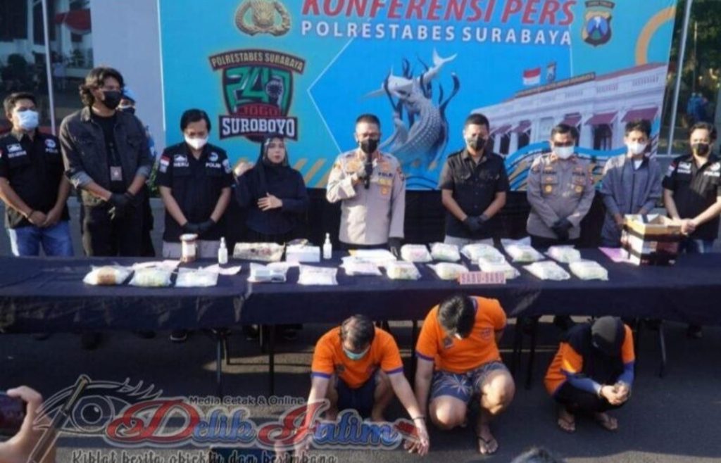 Kapolrestabes Surabaya, Kombes Pol A. Yusep Gunawan, S.H., S.I.K., M.H., M.Han didampingi Kasatresnarkoba, Kompol Daniel Somanonasa dan Kasihumas Polrestabes Surabaya, Kompol Muchamad Fakih saat konferensi pers, menyebutkan yang bersangkutan merupakan seorang perempuan, selain menjadi kurir ia juga pengedar jaringan lintas Provinsi diantaranya Sumatera-Jawa.