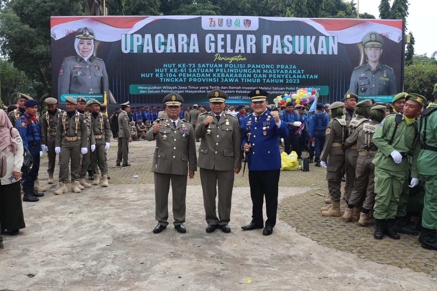 Apel gelar pasukan dihadiri Gubernur Jawa Timur Khofifah Indar Parawansa selaku Inspektur Upacara (Irup). Juga dihadiri Direktur Jenderal (Dirjen) Administrasi Kewilayahan (Adwil) Kementrian Dalam Negeri (Kemendagri) Safrizal ZA. Hadir pula Kepala Satuan Polisi Pamong Praja dan Kepala Pemadam Kebakaran Kabupaten/Kota se-Jawa Timur.