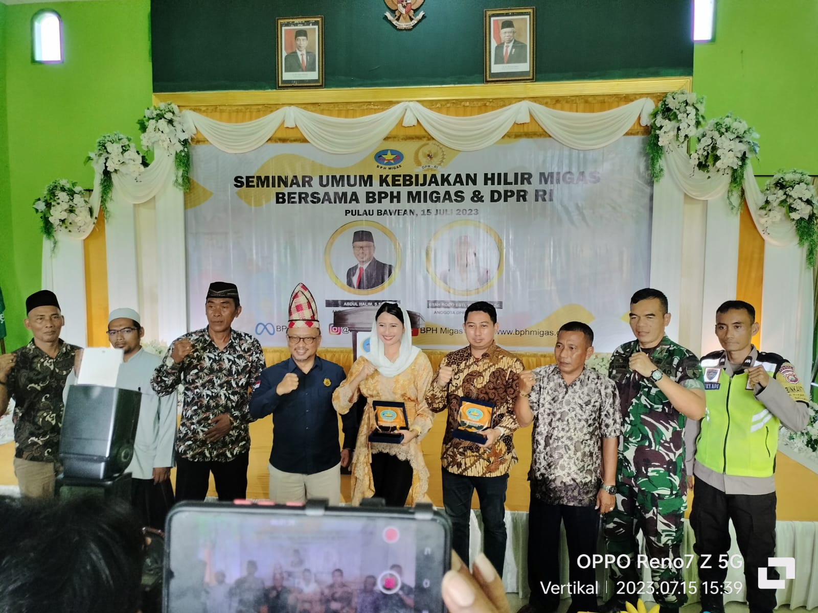 Sebelum acara seminar dimulai , Anggota DPR RI komisi Vll Dyah Roro Esti dari Fraksi Golkar dan Abdul Halim dari Badan Pengatur Hilir Minyak dan Gas Bumi (BPH) migas disambut kesenian dan budaya Bawean pencak silat dan pemasangan odheng atau ikat kepala oleh Kades Sidogedungbatu H. Supar bersama ibu Kades