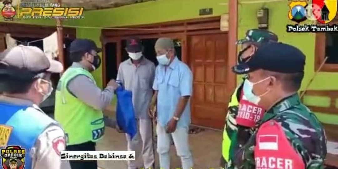 Sinergitas Babinsa dan Bhabinkamtibmas Polsek Tambak, Peduli Penanggulangan Covid-19 di Masa PPKM Darurat