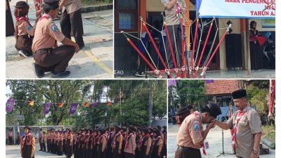 Miko Dhani Asmoro Kepala Sekolah sekaligus pembina upacara dalam sambutannya menyampaikan sebuah arti penting Pramuka yang berlambang tunas kelapa, menunjukkan sebuah arti perjuangan yang selalu tumbuh, Jum’at (08/08/2025).