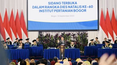 BOGOR, RADARJATIM.CO — Banyak potensi krisis masa depan, salah satunya krisis pangan. Dimana banyak negara yang kesulitan mendapatkan impor beras dari negara lain, termasuk Indonesia. Hal ini diungkapkan Jokowi dalam pidatonya pada acara Sidang Terbuka Dies Natalis ke 60 Institute Pertanian Bogor (IPB) di Kampus IPB, Kabupaten Bogor, Jawa Barat, Jumat (15/9).