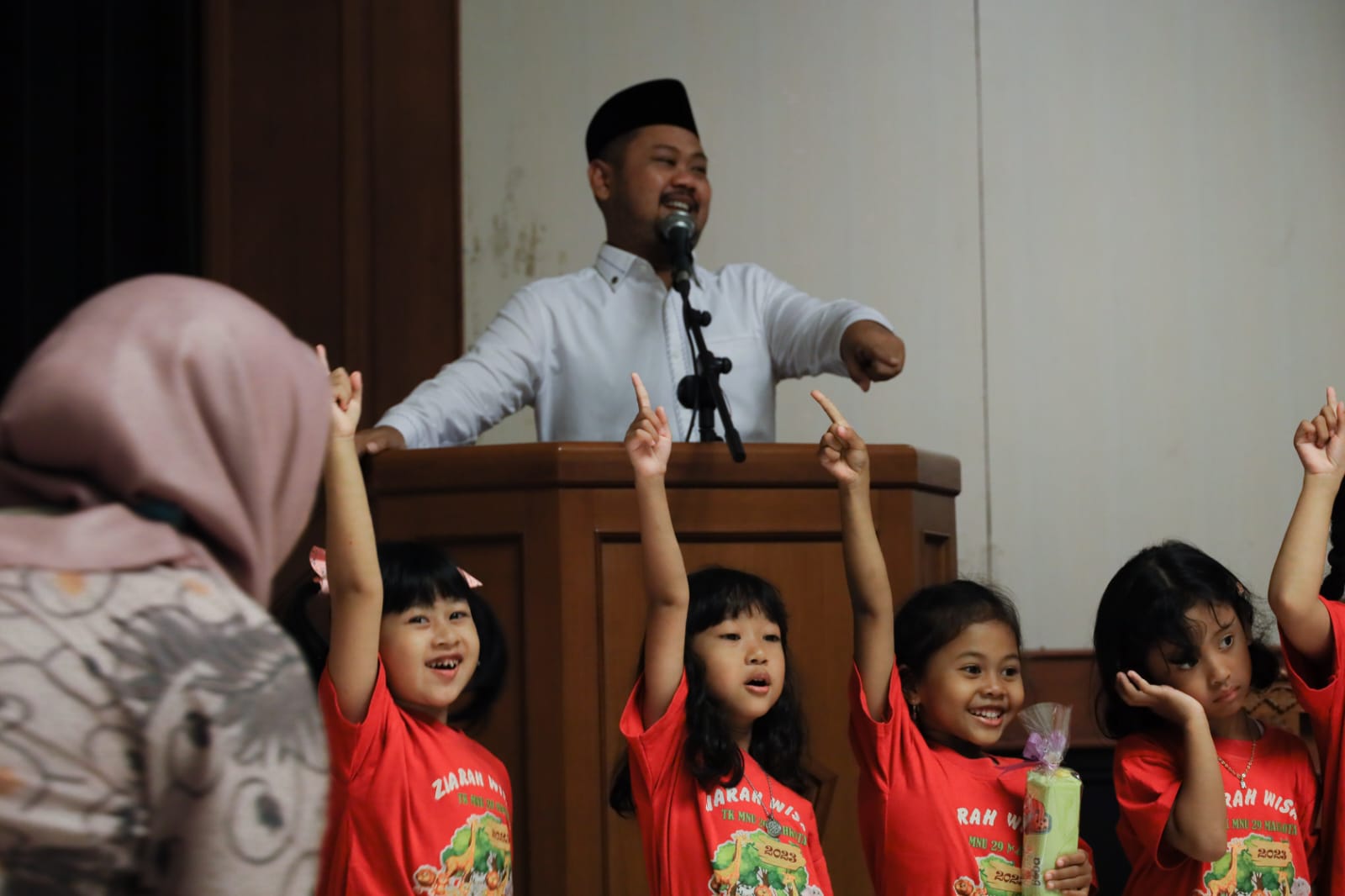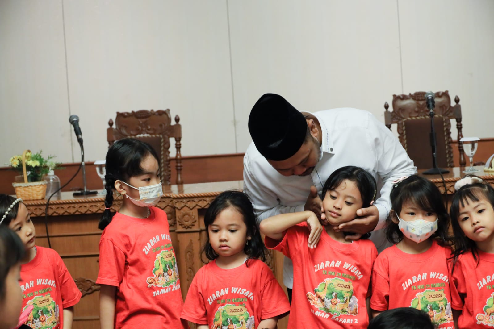 Gresik, Radarjatim.co – TK Muslimat NU 29 Mahkota, melakukan kunjungan ke Kantor Bupati Gresik, Rabu (01/03). Kunjungan tersebut disambut hangat oleh Bupati Gresik, Fandi Akhmad Yani beserta para OPD terkait. Dalam momen spesial tersebut, terlihat keakraban Bupati Gresik dengan para anak-anak TK.