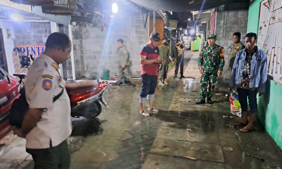 Surabaya, | RADARJATIM .CO. – Guna mengantisipasi curah hujan yang tinggi dalam waktu terakhir, Tiga Pilar (TNI, Polri, dan Pemerintah) Kecamatan Benowo melaksanakan Pemantauan dan patroli diwilayah Kelurahan Romokalisari akibat Luapan Sungai Lamong yang mengakibatkan DK.Gendong RT.01 dan RT.02 RW.03 mengalami genangan kurang lebih 15 cm di sekitaran jalan masuk gang DK.Gendong Kelurahan Romokalisari, Selasa (20/2) malam.