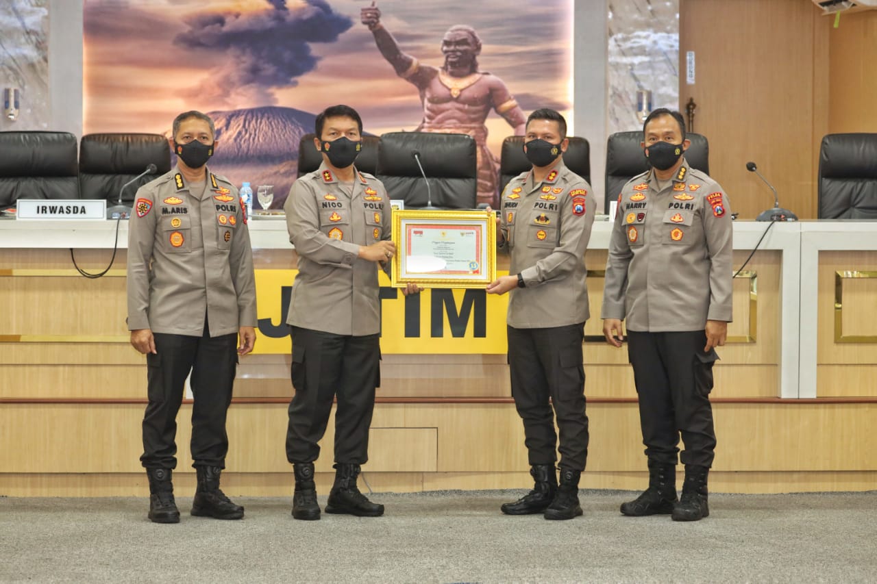 Tingkatkan Pelayanan, Kapolda Jatim Gelar Vicon Pemberian Penghargaan Kepada Kapolresta Malang Kota Atas Capaian Top 15 Kelompok Khusus Inovasi Pelayanan Publik Tahun 2021
