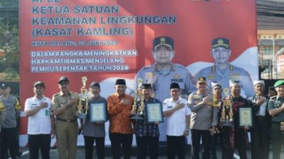 Kota Malang, Radarjatim.co~Apel Ketua Satuan Keamanan Lingkungan Satkamling di gelar di lapangan Apel Polresta Malang Kota pada Rabu, ( 21/6/2023 )pukul 08.00 WIB. Acara tersebut diselenggarakan dalam rangka pemberian penghargaan kepada pemenang Satkamling jajaran Kota Malang sebagai wujud apresiasi dari kontribusi warga masyarakat dalam menjaga keamanan dan ketertiban lingkungannya.