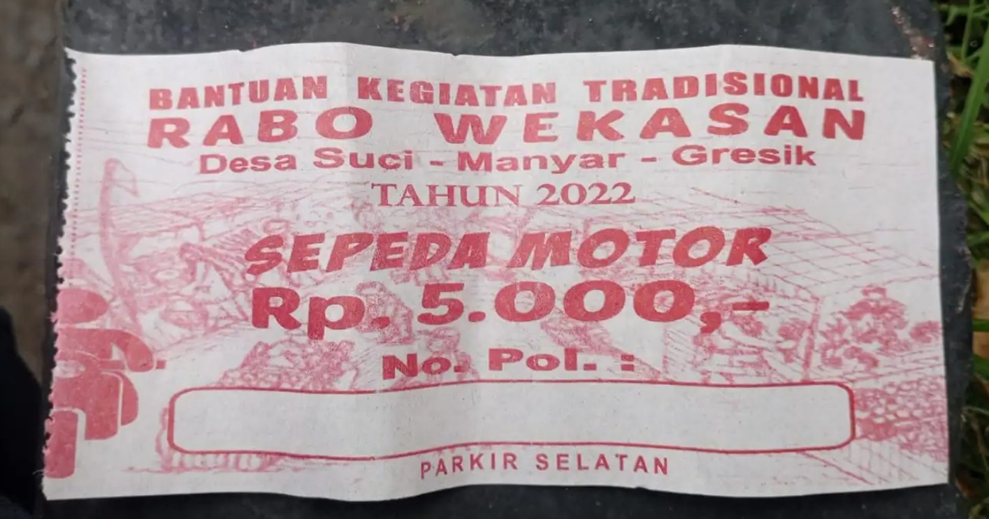 Akun Alfi Damayanti juga menggunggah postingan di salah satu grup FB di Gresik. Terkait pungutan paksa karcis parkir, bagi pengguna kendaraan yang melintas di jalan raya Suci selama Acara Rebo Wekasan berlangsung dengan kalimat ” Tradisi Rebo Wekasan memang harus dilestarikan. Tapi yang menjadi keluhan masyarakat yang melintas di wilayah tersebut adalah harus bayar karcis 5000. Tanpa ada banner atau spanduk pengumuman selain warga suci yang melintas di wilayah suci harus bayar selama ada kegiatan. Bisa jadi contoh ini buat desa-desa lainnya. Jika desa yang dekat jalan raya atau pas ada kegiatan desa, tarif diberlakukan. Tanpa pandang bulu Jika bukan warga desa HARUS BAYAR,” tulis akun Alfi Damayanti di postingannya.