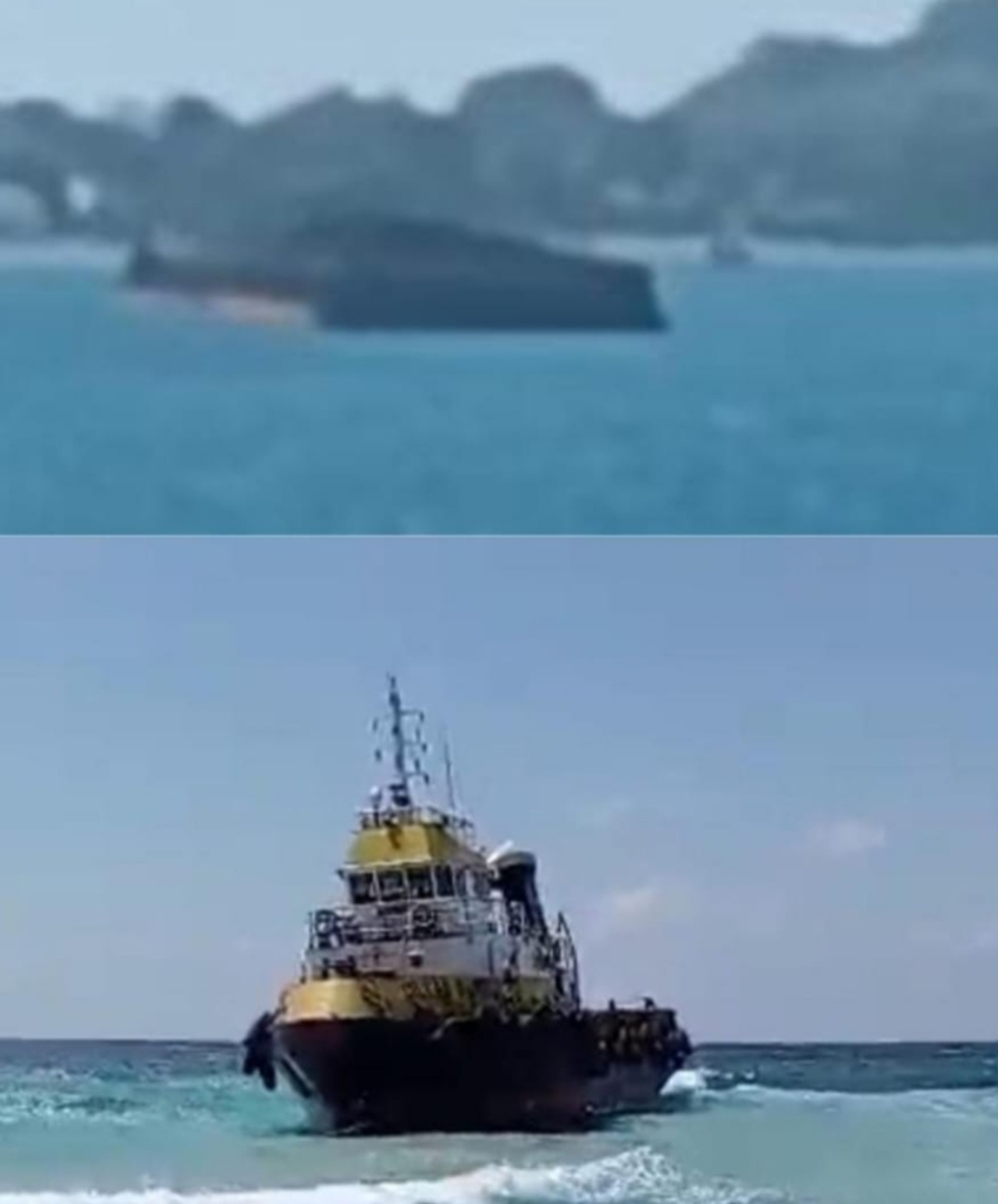 Sebuah kapal Tugboat Rimau 31 beserta tongkang muatan batu bara mengalami kandas dan menabrak terumbu karang di perairan tersebut.