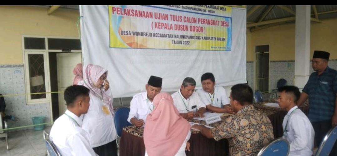 Gresik || radarjatim.co~Untuk meningkatkan pelayanan, Pemerintah Desa (Pemdes) Wonorejo melalui Panitia Penjaringan dan Penyaringan Perangkat Desa (P3D) pada hari ini sudah sampai tahapan Ujian Tes untuk mengisi posisi jabatan yang kosong yakni ” Kepala Dusun Gogor ”