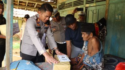 AKBP Siswantoro S.IK, MH sambil memberikan bantuan sosial berupa paket sembako dan uang santunan mengucapkan permohonan maaf kepada Budali karena baru bisa mengunjungi rumahnya dan mendoakan semoga selalu diberi kesehatan yang baik serta lekas sembuh pasca mendapatan pengobatan operasi hernia.
