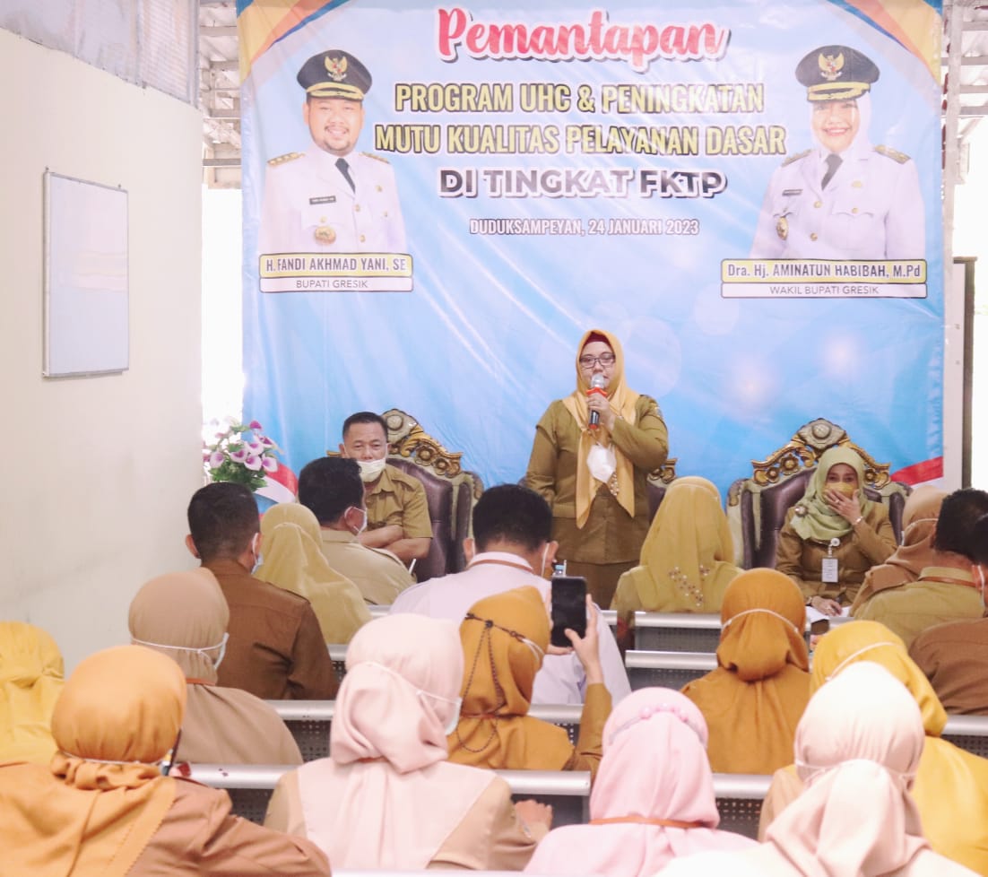 “UHC bertujuan untuk memudahkan seluruh masyarakat di Kabupaten Gresik mendapatkan pelayanan kesehatan. Tentunya sesuai klasifikasi kelas yang sudah ditentukan,” kata Bu Min.