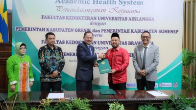Hal ini terungkap, saat penandatanganan kerja sama program pendidikan dokter spesialis, penelitian dan pengabdian masyarakat FK Unair dan FK UB dengan Pemerintahan Kabupaten Gresik, Kamis (30/03/2023).